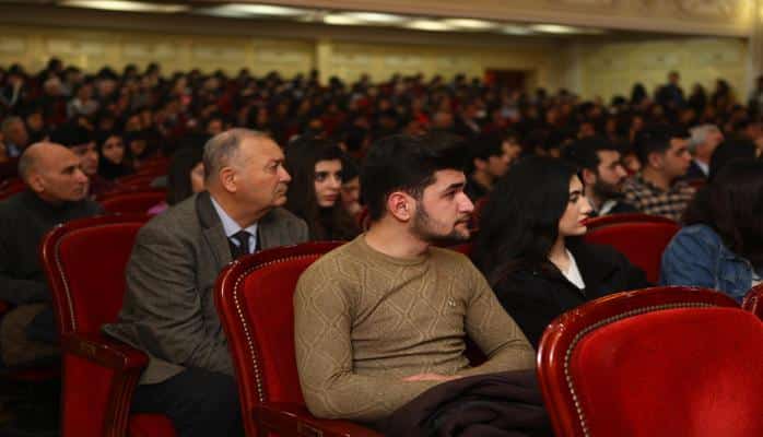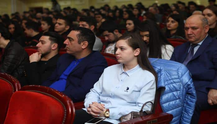 Затем выступила студентка биологического факультета Вафа Мурсалзаде. Мероприятие завершилось демонстрацией студентами вуза пантомимы в сюрреалистическом стиле «Последнее звено цепи», посвященной Дню геноцида.
