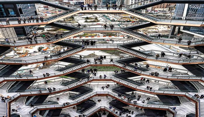 Vessel – изюминка нового комплекса Хадсон Ярдз, включающего в себя небоскребы, рестораны, торговые центры и открытые зоны со множеством развлечений. По сути, Vessel – это вертикальная смотровая площадка, напоминающая лабиринт. Ее диаметр у основания составляет 15 метров, в верхней части – около 46 метров. Каждый лестничный пролет абсолютно идентичен остальным, из-за чего создается впечатление бесконечной лестницы.