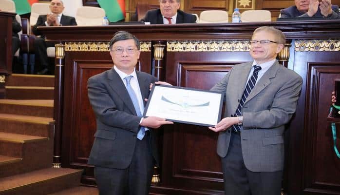 На проходившей в НАНА международной конференции, посвященной 90-летнему юбилею академика Джалала Алиева, награду ученому вручил секретарь Международного общества по исследованиям в области фотосинтеза, профессор Джулиан Итон-Рай.