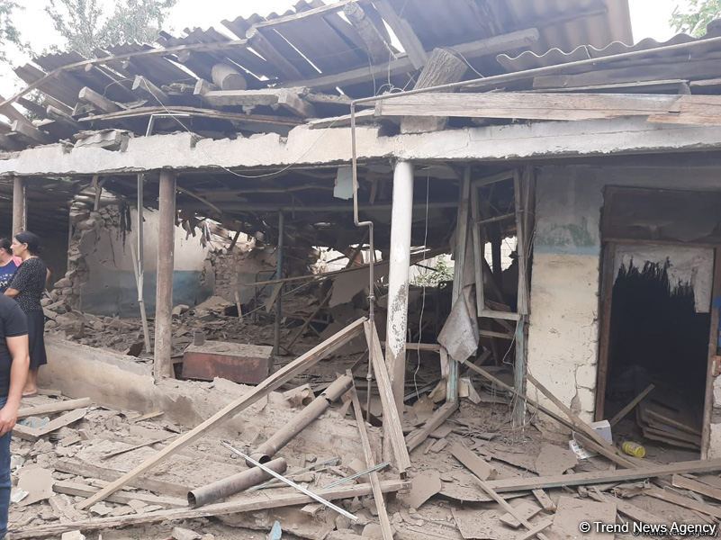 В результате обстрела со стороны ВС Армении села Дондар Гушчу Товузского района снаряды упали на жилые дома и приусадебные участки.