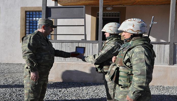 Генерал-полковник З.Гасанов встретился с солдатами и офицерами на передовой, поинтересовался организацией службы и вручил ценные подарки группе военнослужащих, отличившихся на службе.