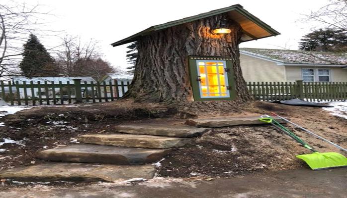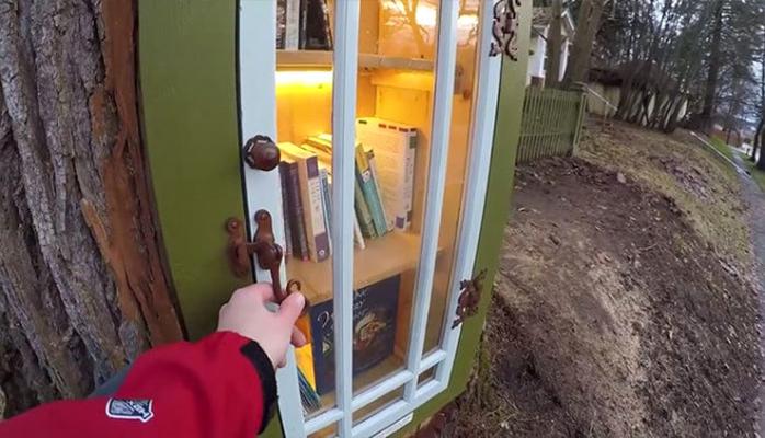 Ağacın başını isə kiçik bir dam örtüyü vasitəsilə örtən Hovard oyduğu ağaca qapı da quraşdırıb. Mini kitabxananın içini işıqlandıran Hovardın yeni işi sosial şəbəkədə böyük maraqla qarşılanıb.