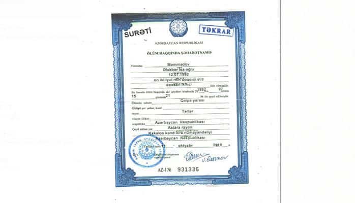 Aparılan araşdırmaya və mövcud sənədlərə əsasən, mərhum Məmmədov Ələkbər İsa oğlu 930 saylı hərbi hissədə xidmət keçərkən Azərbaycanın ərazi bütövlüyü uğrunda aparılan hərbi əməliyyatlar zamanı yox, xidməti vəzifəsini yerinə yetirərkən 12.07.1992-ci il tarixdə avtoqəza nəticəsində (bədbəxt hadisə nəticəsində) həlak olub.