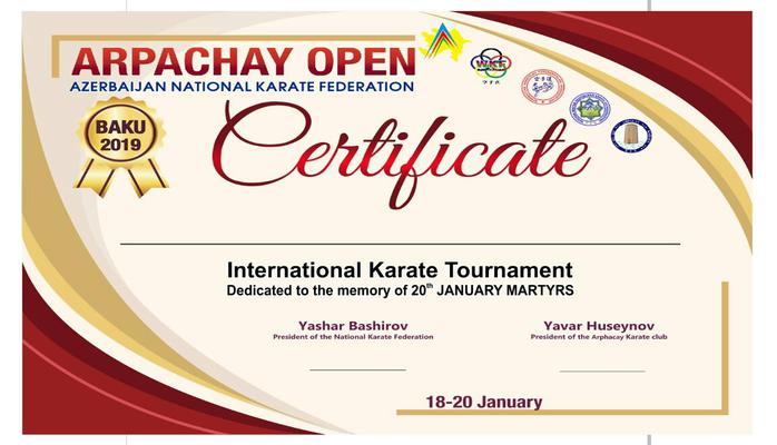Azərbaycan Milli Karate Federasiyasından (AMKF) Trend-ə verilən məlumata görə, uşaqlar, yeniyetmələr və gənclər arasında klublararası açıq turniri Azərbaycan Milli Karate Federasiyası və "Arpaçay" karate klubu birgə təşkil edir. Yarışın açılış mərasimi 19 yanvar saat 17:00-da olacaq.