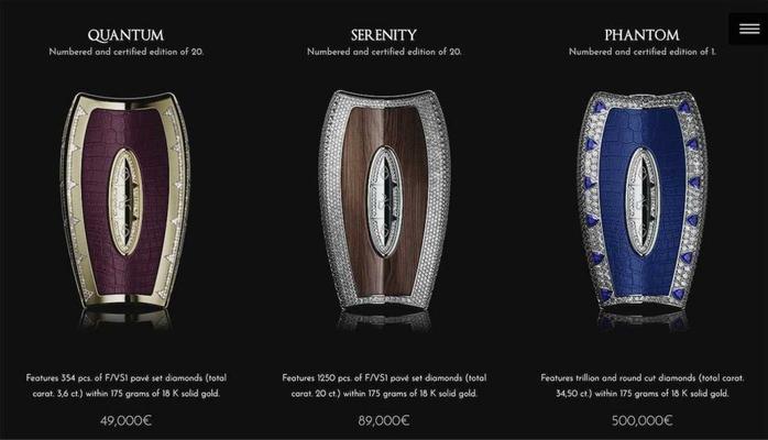 Ən bahalı versiya Phantom adına və 500 min avroluq qiymətə malikdir. Bu açar 34,5 karatlıq brillianlar ilə bəzədilib. Hər bir açarın gövdəsi 18 və ya 24 karatlıq qızıldan hazırlanır və 175 qram çəkiyə malikdir.