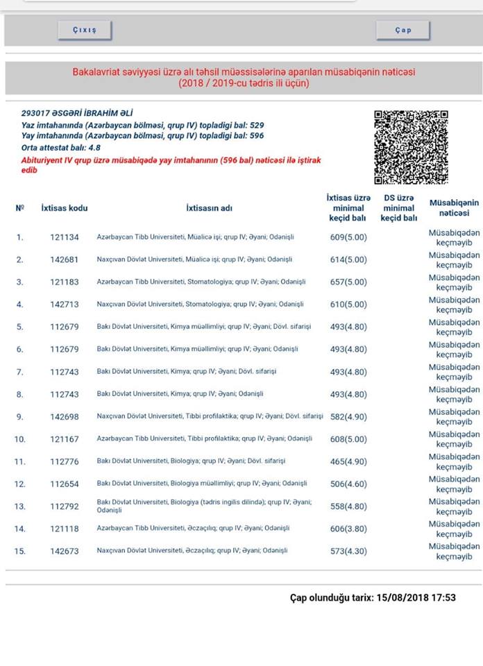 Azərbaycanda Əsgəri İbrahim Əli oğlu adlı abituriyent qəbul imtahanında 596 bal yığmasına və seçdiyi ixtisasların bir çoxuna tələb olunan keçid balını keçsə də heç bir yerə qəbul ola bilməyib.