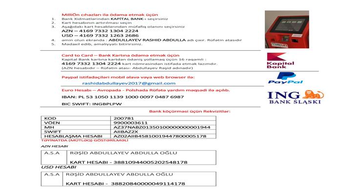 Aşağıda Rüfət-in atası Abdullayev Rəşid Abdulla oğlu-un adına açılmış hesab göstərilib.