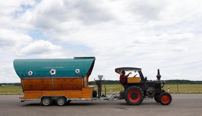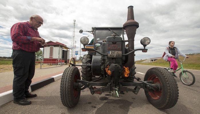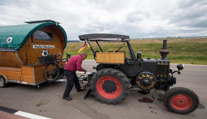 Publika.az xəbər verir ki, Almaniya vətəndaşı Hubert Uirt 14 iyunda başlanacaq çempionatda ölkəsinin millisini dəstəkləmək üçün 1936-cı ildə istehsal olunan traktoru ilə gedib.
