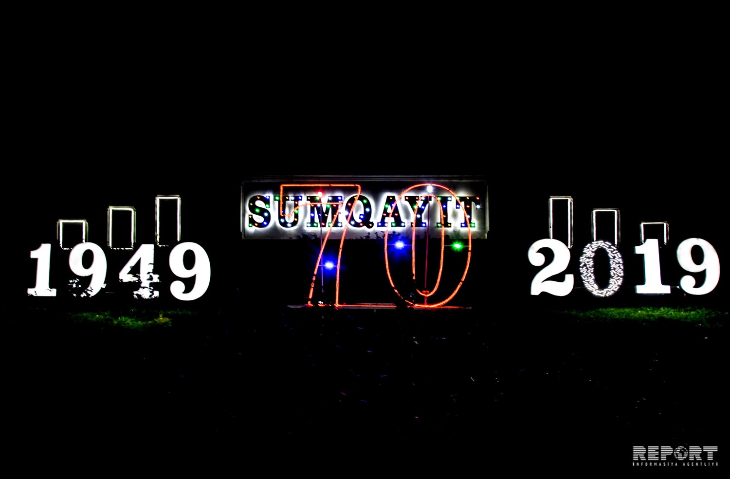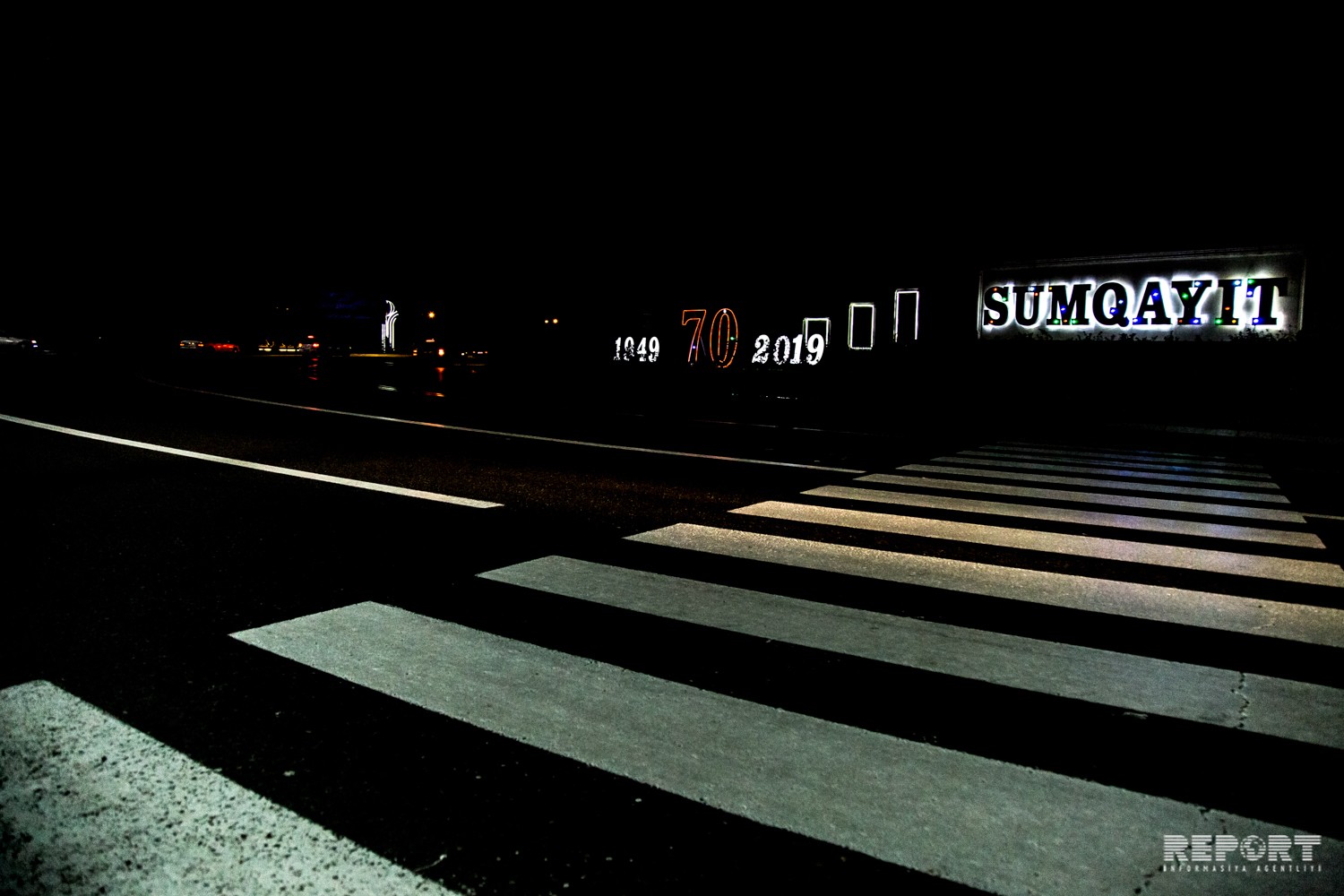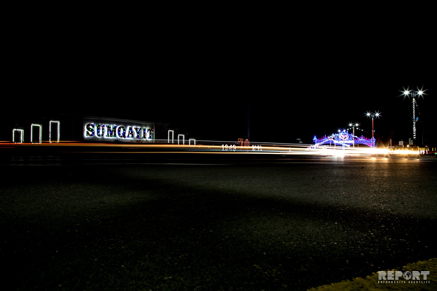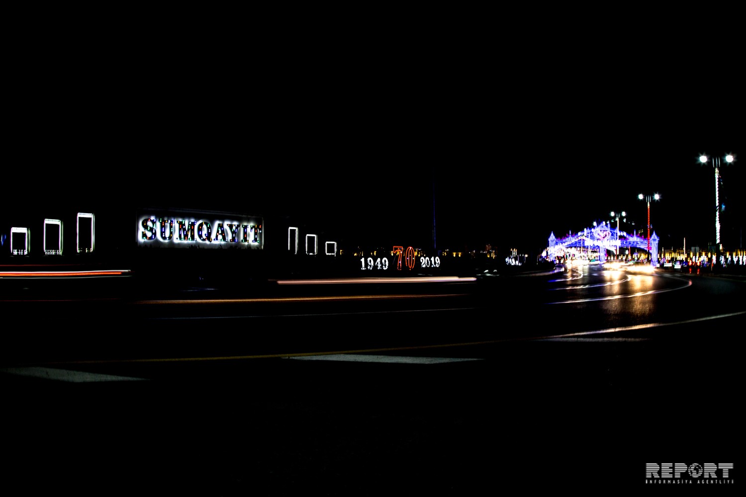 “Report” tədbirlər planı çərçivəsində Sumqayıtın girişində quraşdırılmış işıqlı dekorasiyadan fotoları təqdim edir.