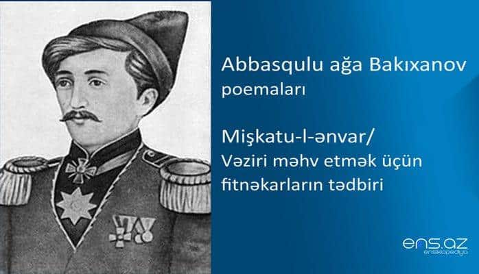 Abbasqulu ağa Bakıxanov - Mişkatu-l-ənvar/Vəziri məhv etmək üçün fitnəkarların tədbiri