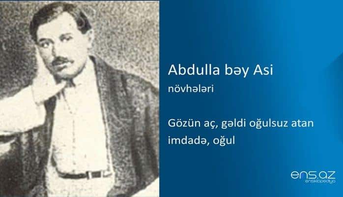 Abdulla bəy Asi - Gözün ac, gəldi oğulsuz atan imdadə, oğul adlı növhəsi