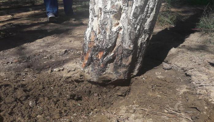 Ağacların quruma səbəblərini müəyyənləşdirmək məqsədilə ağacların dibindən torpaq nümunələri götürülərkən torpaq səviyyəsindən 5 sm dərinlikdə ağacların dib kötüyünün həlqəvi olaraq 5-6 sm enində kəsici alətlə boy artımının dayandırılması dərəcəsinədək ciddi zədələndiyi, kötüklərinin yandırıldığı, həmçinin ağacların dibinə kristallaşdırılmış NaCl duzu tökülərək məqsədli şəkildə məhv edildiyi məlum olub.