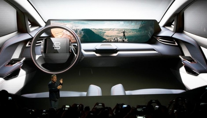 Bu, tablet və adi əl hərəkəti ilə idarə olunan futuristik maşın Byton-dur.