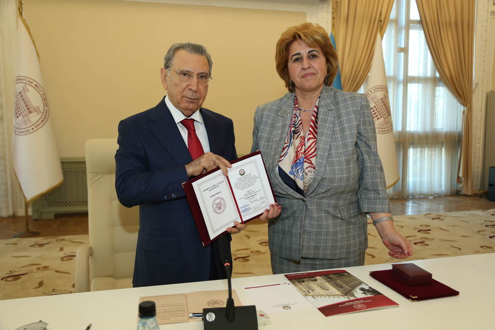 Daha sonra iclasda “Azərbaycan Respublikasının Nizami Gəncəvi adına Qızıl medalı”nın təqdimatı keçirilib.