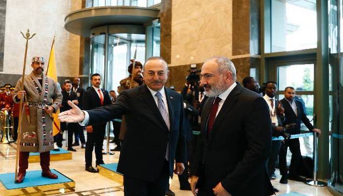 Andiçmə mərasiminə gələn Paşinyanı Çavuşoğlu qarşıladı