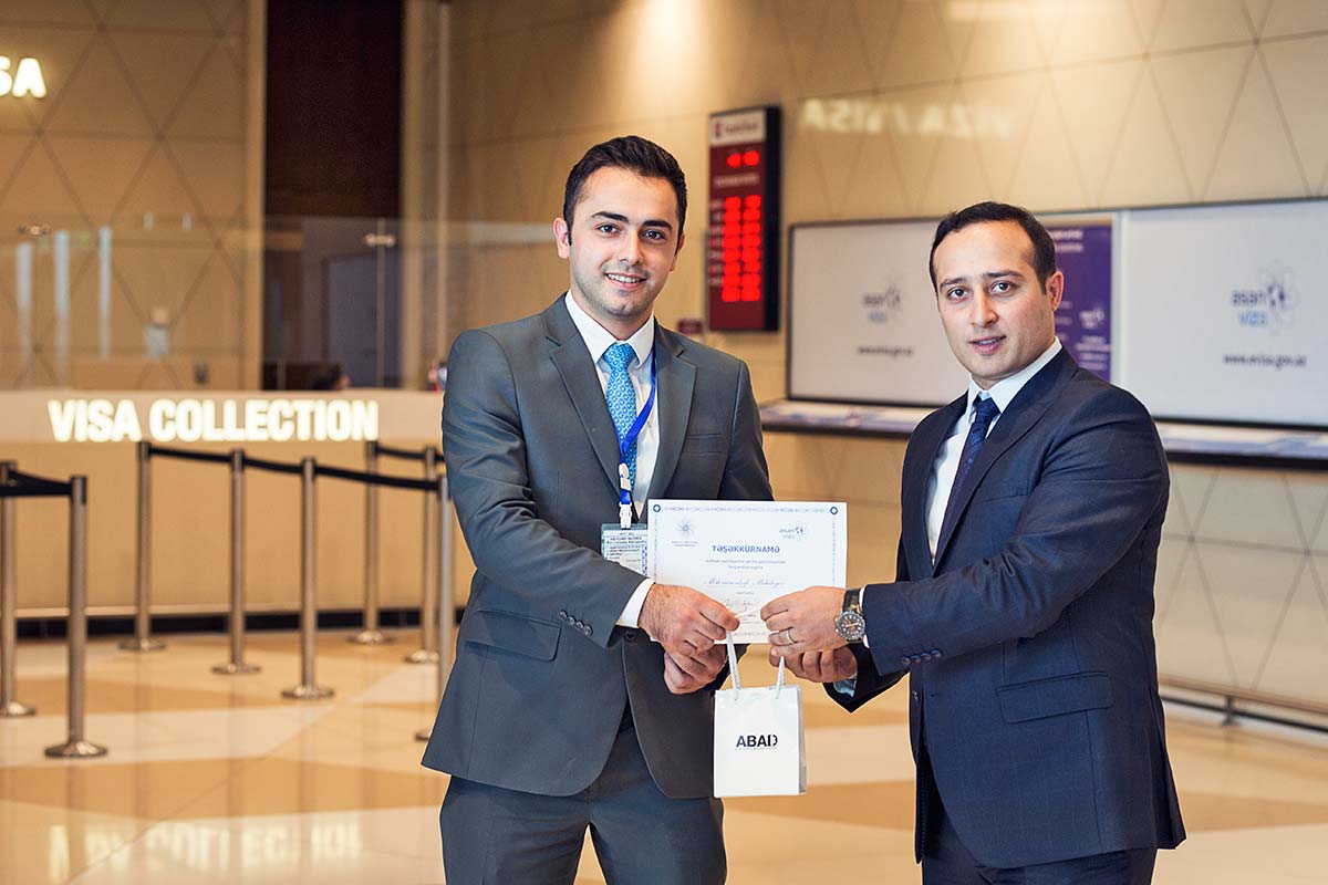 15 avqust 2018-ci il tarixində “ASAN Viza”nın hava limanlarında fəaliyyət göstərən bir neçə əməkdaşına xidməti vəzifələrinin yerinə yetirilməsində fərqləndiklərinə görə sertifikat və hədiyyələr təqdim edilib.