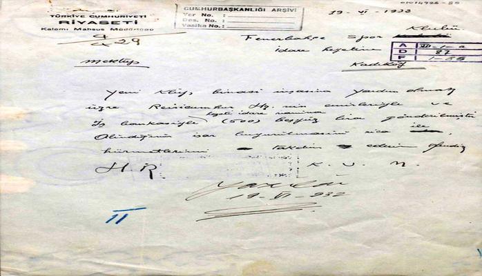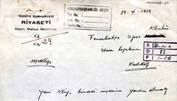 Cebhe.info Türkiyə mediasına istinadən xəbər verir ki, məktub futbolla əlaqəlidir. Məktub Türkiyə cümhuriyyəti prezidenti katibliyinin o zamankı rəhbəri Hasan Rıza Soyak tərəfindən yazılıb. Sənəddə Mustafa Kamalın kluba ianə verməsi əks olunur. Qeyd olunur ki, prezident “Fənərbağça” klubuna yeni binanın inşası üçün 500 lirə ayırıb.