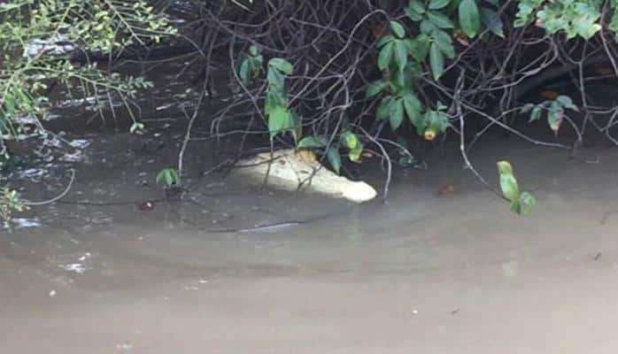 Ekspertlərə görə, iri timsahın ağ rəngdə olması nadir hadisədir.