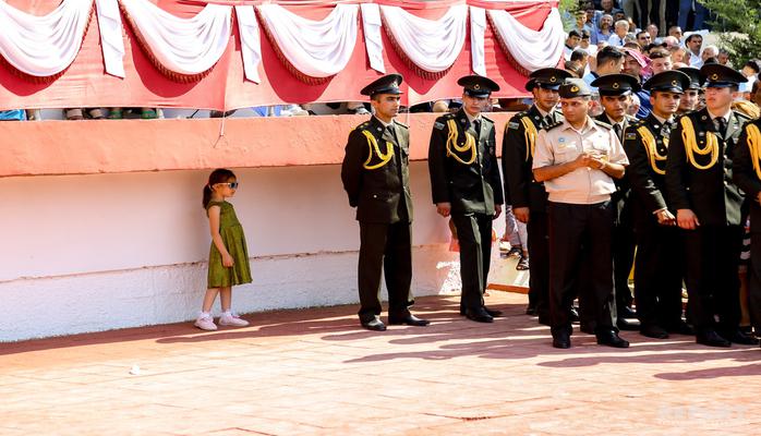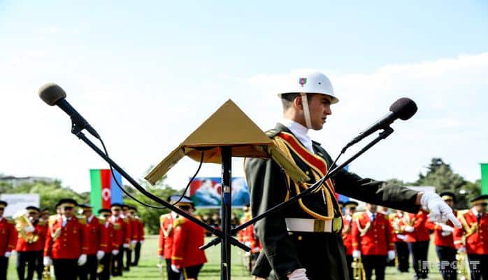 Sonda kursantlar hərbi marşın sədaları altında tribunanın önündən keçiblər.