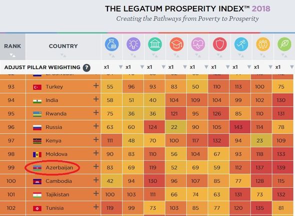 Oxu.Az xəbər verir ki, “Tərəqqi indeksi” (Prosperity Index) Britaniyanın “Legatum Institute” mərkəzi tərəfindən doqquz kateqoriyadan ibarət müxtəlif göstəricilər üzərində qurulub.