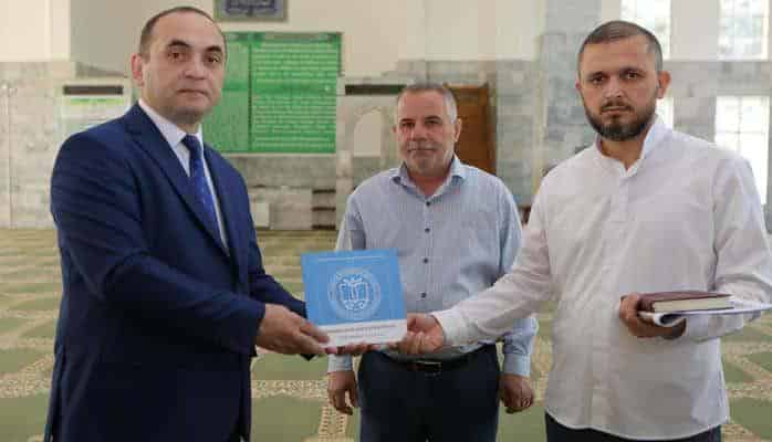 Məscidə Aİİ-nin mətbu orqanı “İlahiyyatçı” qəzeti, İnstitutun fəaliyyətini əks etdirən materiallar, “Qurani-Kərim”in Azərbaycan dilində tərcüməsi təqdim edilib.