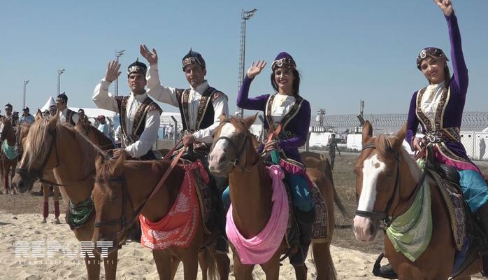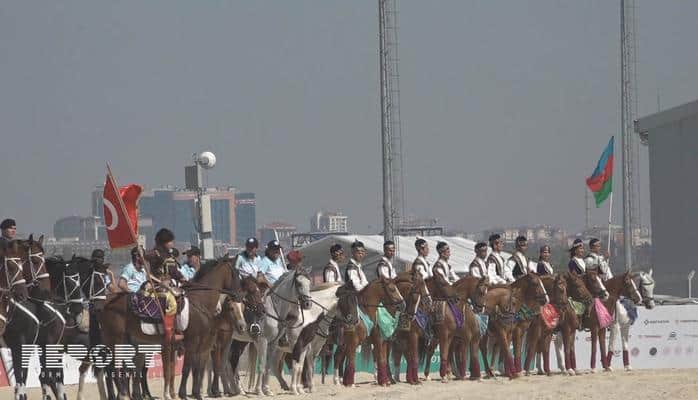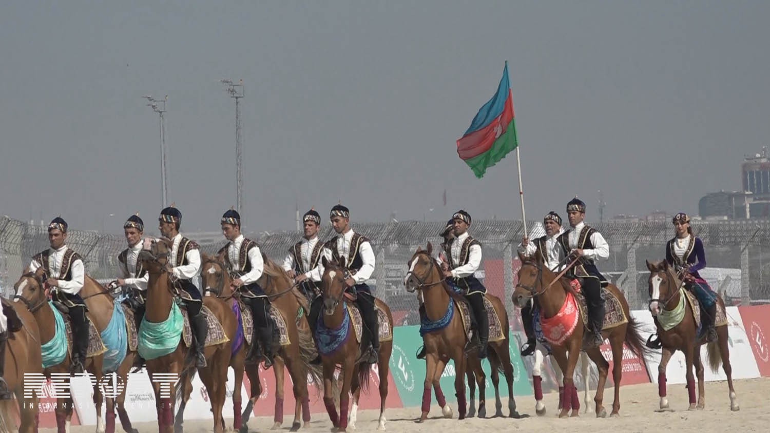 Rəsmi açılış mərasimindən sonra Azərbaycan təmsilçiləri “Qarabağ atları və Azərbaycan kəlağıyısı” kompozisiyasını təqdim edib. Süvarilərimiz at belində çətin nömrələri peşəkarlıqla reallaşdırıblar. At üzərindəki akrobatik hərəkətlər zamanı “Qarabağ şikəstəsi”, “Ay Laçın” mahnısı səsləndirilib, rəqqasların atlarla rəqsləri nümayiş olunub. Sonda at üzərində “Bir millət, iki dövlət!” şüarının əks oldunduğu plakat və hər iki ölkənin bayrağı dalğalandırılıb.