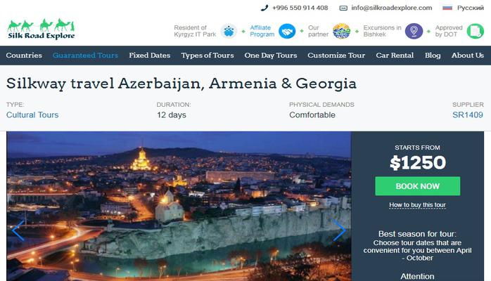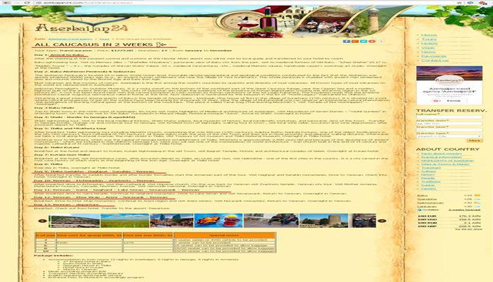 Saytda 2 həftəlik Qafqaz turu satılır. Turun yanvar, dekabr aylarındakı qiyməti 1275 dollar olub.