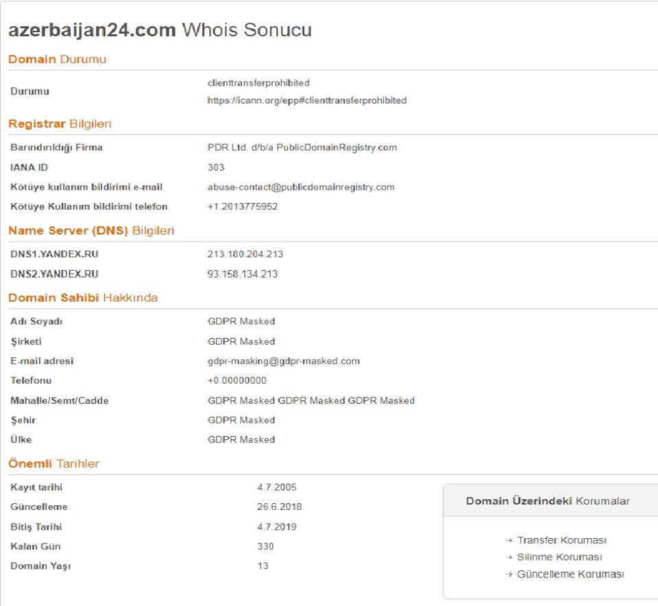Saytın kimə məxsus olması isə tamamilə gizlədilib. Saytın giriş hissəsində Azərbaycanın qədim tarixə məxsus olmasına dair məlumatlara rast gəlsək, Azərbaycanı öyməsini görsək də, sayt internet üzərindən Azərbaycana aid olmasını tamamilə ört-basdır edir. Niyə? Bir bilsək. Saytın domeni haqqında informasiya gizlədilsə də, “Azerbaijan24”ün “google+”dakı səhifəsində “Baku, Q-Qarayev avenue 83 (AZ 370118)” ünvanında yerləşdiyini tapa bildik. “Azerbaijan24.com” saytının serverləri də müxtəlif ölkələrdədir. Azərbaycanla bağlı məsələ isə yenə gizlədilib. Saytın əlaqə bölməsindəki nömrələr (+44 207 1837 191, + 44 2033 227751) isə İngiltərəyə məxsusdur.
