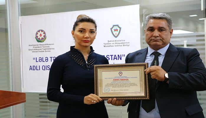 Tədbirdə rektor Səadət Əliyeva Şəhid Ailələrinə Yardım və Hüquqlarının Müdafiəsi İctimai Birliyinin Fəxri Fərmanı ilə təltif olunub. Rövşən Ağamalıyev qeyd edib ki, Fəxri Fərman Universitet tərəfindən “Şəhid Fəxrəddin Qurbanlı” təqaüdünün təsis olunması və filmin çəkilişində göstərilən dəstəyə görə təqdim olunur.