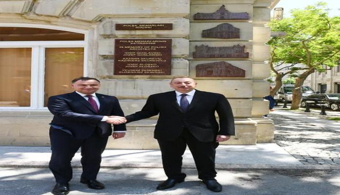 Azərbaycan və Polşa prezidentləri Bakıda Polşa memarlarının xatirəsinə həsr edilən lövhələrin açılış…