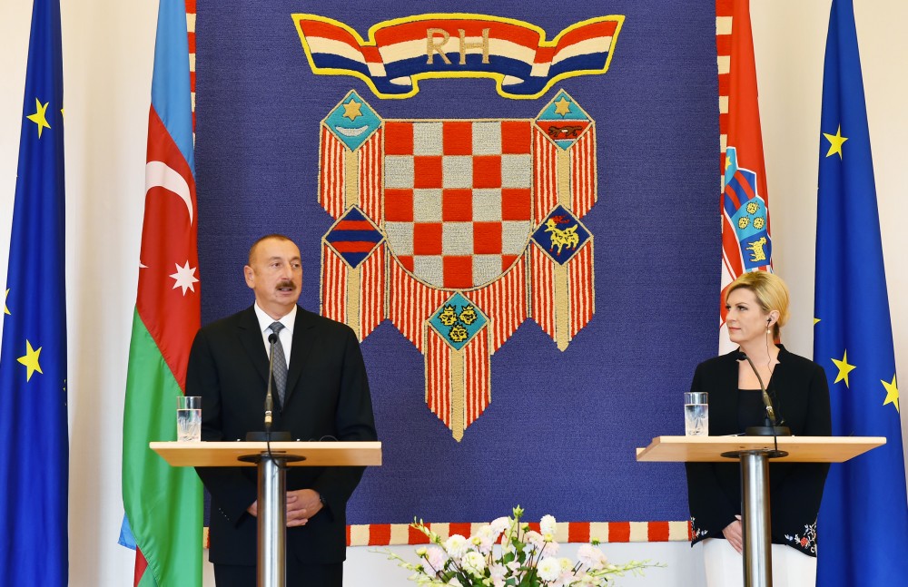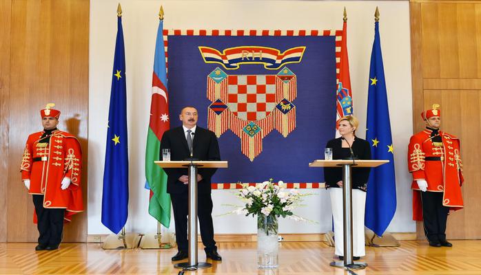 Bizim siyasi dialoqumuz çox fəal aparılır. Xanım Prezident qeyd etdiyi kimi, biz tez-tez görüşürük. İki il bundan əvvəl xanım Prezident Azərbaycanda rəsmi səfərdə idi. Səfər çox uğurlu keçmişdir və çox gözəl nəticələri olmuşdur. Keçən il biz bir beynəlxalq konfrans çərçivəsində görüşmüşdük. Bu gün də mən Xorvatiyadayam. Bu, göstərir ki, siyasi dialoq çox fəaldır. Bu, onu göstərir ki, Xorvatiya və Azərbaycan doğrudan da strateji tərəfdaşlardır. Xanım Prezidentin qeyd etdiyi kimi, beş il bundan əvvəl Zaqrebdə bu barədə Bəyannamə imzalanmışdır.