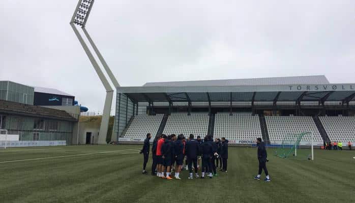 "Report"un Torshavna ezam olunmuş əməkdaşının verdiyi məlumata görə, hazırlıq prosesi oyunun təşkil olunacağı "Torsvollur" stadionunda baş tutub.
