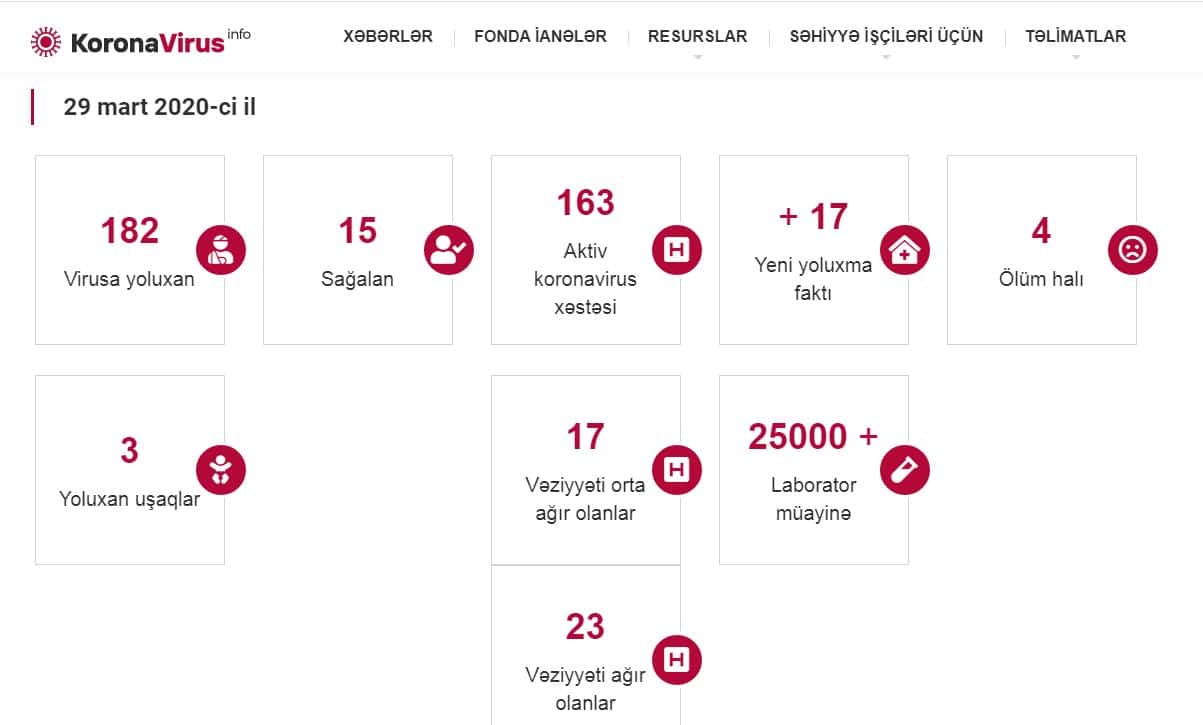 Azərbaycanda koronavirusa yoluxmuş 182 nəfərdən 3 uşaqdır.