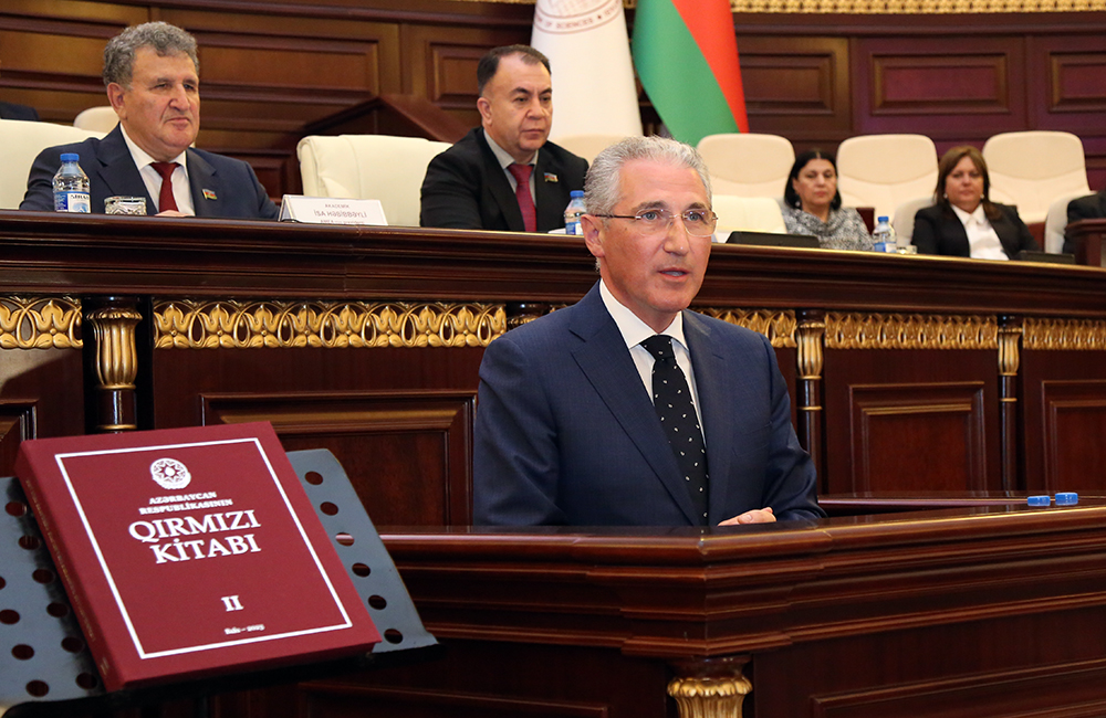Daha sonra AMEA-nın vitse-prezidenti, akademik İradə Hüseynova “Azərbaycanın biomüxtəlifliyinin nadir incilərinin qorunub saxlanması “Qırmızı kitab”ın əsas məramıdır” mövzusunda çıxış edib. Qeyd edib ki, “Qırmızı kitab”ın I və II nəşrlərinə daxil edilmiş, lakin keçən müddət ərzində aparılmış mühafizə tədbirləri nəticəsində sayında və arealında əhəmiyyətli artım qeydə alınan növlərin və eləcə də adları siyahıda olduğu halda, ölkənin flora və faunasında uzun illər təsadüf edilməmiş növlərin siyahıdan çıxarılmasına, eyni zamanda saylarında və yayılmasında ciddi azalmalar qeydə alınan növlərin əlavə edilməsinə ehtiyac olduğu nəzərə alınaraq, 2019-cu ildə “Qırmızı kitab”ın yeni – III nəşri üzrə fəaliyyətlər intensivləşdirilib. Bildirib ki, “Qırmızı kitab”ın Redaksiya heyəti tərəfindən III nəşr üzrə 2019-2023-cü illəri əhatə edən elmi iş proqramı hazırlanmış, AMEA-da müvafiq Redaksiya heyəti, Botanika, Zoologiya, Dendrologiya, Naxçıvan Bioresurslar institutlarının, Mərkəzi Nəbatat Bağının, digər elmi tədqiqat və təhsil müəssisələrinin alim və mütəxəssislərindən təşkil edilmiş işçi qrupları tərəfindən iş proqramının icrası istiqamətində bütün mümkün fəaliyyətlər həyata keçirilmişdir.