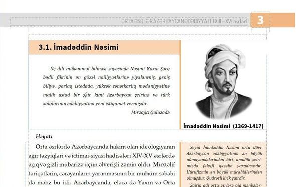 Azərbaycanda dərs vəsaitində Nəsiminin adı səhv yazıldı - RƏSMİ AÇIQLAMA
