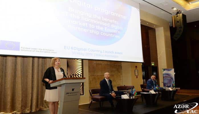 AZƏRTAC xəbər verir ki, tədbirdə çıxış edən Avropa İttifaqının (Aİ) Azərbaycandakı nümayəndəliyinin əməkdaşlıq bölməsinin rəhbəri, müşavir-elçi Simona Qatti proqramın əsas məqsədinin Aİ-nin vahid rəqəmsal bazar üzrə faydalarını "Şərq tərəfdaşlığı" ölkələrinə çatdırmaq olduğunu deyib.