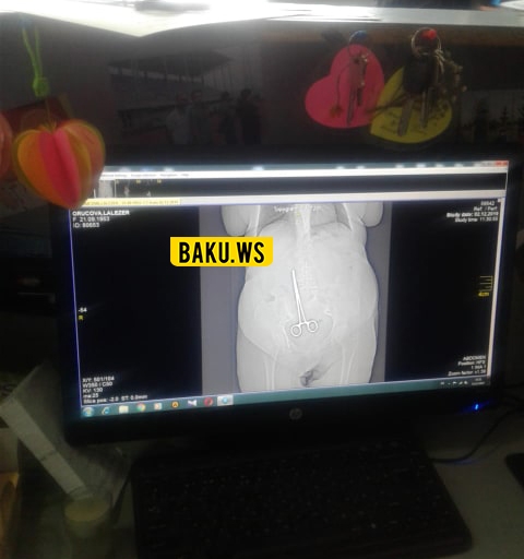 Məlum olub ki, qadının bədənində yad cisim (əməliyyat qayçısı) var.