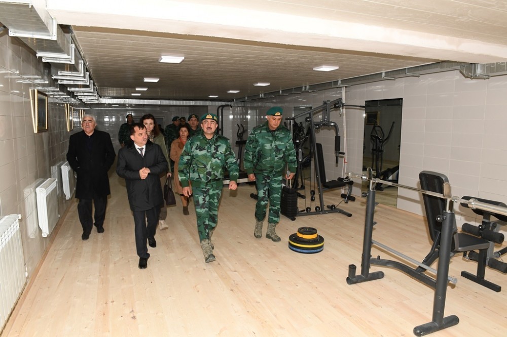 Sonra hərbi hissəyə baxış keçirilib. Hərbi hissədə xidməti-döyüş fəaliyyətinin yüksək səviyyədə təşkili və sərhədçilərin istirahəti üçün hər cür şərait yaradılıb. Yeni hərbi hissədə qərargah və idarəetmə bölmələri üçün binalar kompleksi, müddətli hərbi qulluqçuların kazarma binaları, hərbi qulluqçular və ailə üzvləri üçün xidməti mənzillər, tibb məntəqəsi, texniki təyinatlı binalar, döyüş texnikası parkı inşa olunub, 150 metr dərinlikdə artezian quyusu qazılıb.
