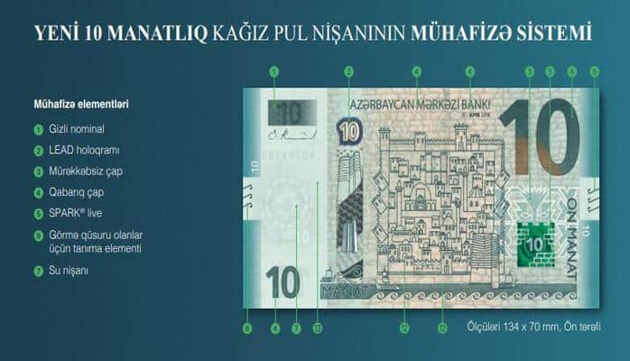 Azərbaycanda yenilənmiş 10 manatlıq pul nişanı dövriyyəyə buraxılır