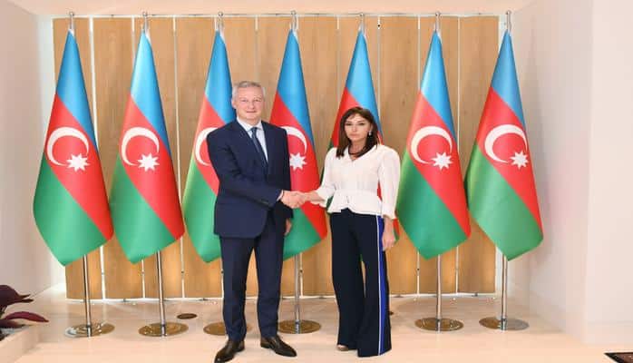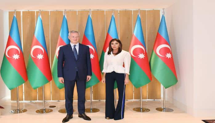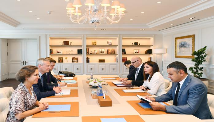 Birinci vitse-prezident Mehriban Əliyeva bu ilin martında Parisə səfəri zamanı Fransanın İqtisadiyyat və Maliyyə naziri Brüno Lö Merlə görüşü və aparılan müzakirələri xatırladı, qonağın Azərbaycana səfərinin uğurla keçəcəyinə əminliyini ifadə etdi. Mehriban Əliyeva Azərbaycan ilə Fransa arasında münasibətlərin dostluq və qarşılıqlı maraqlara əsaslandığını qeyd etdi, siyasi əlaqələrin yüksək səviyyədə olduğunu bildirdi. İqtisadi əlaqələrin münasibətlərimizin inkişafında xüsusi yer tutduğunu vurğulayan Birinci vitse-prezident son zamanlar bu sahədə müşahidə edilən müsbət dinamikanın ölkələrimiz arasındakı əlaqələrin daha da genişlənməsinə töhfə olacağını dedi. Birinci vitse-prezident mövcud potensialdan tam istifadə etməyin vacibliyini diqqətə çatdırdı.