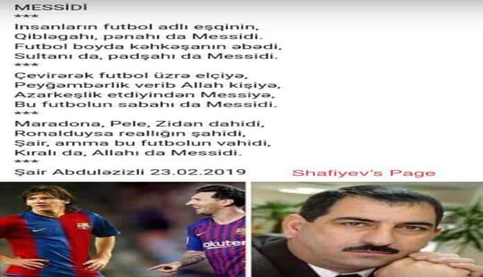 Offsideplus.az xəbər verir ki, Şair Abduləzizli adlı şəxs "Messidir" adlı yazdığı maraqlı şeri sosial şəbəkə hesabından paylaşıb. Bu şer izləyicilər tərəfindən xeyli marağa səbəb olub. Həmin şeri təqdim edirik: