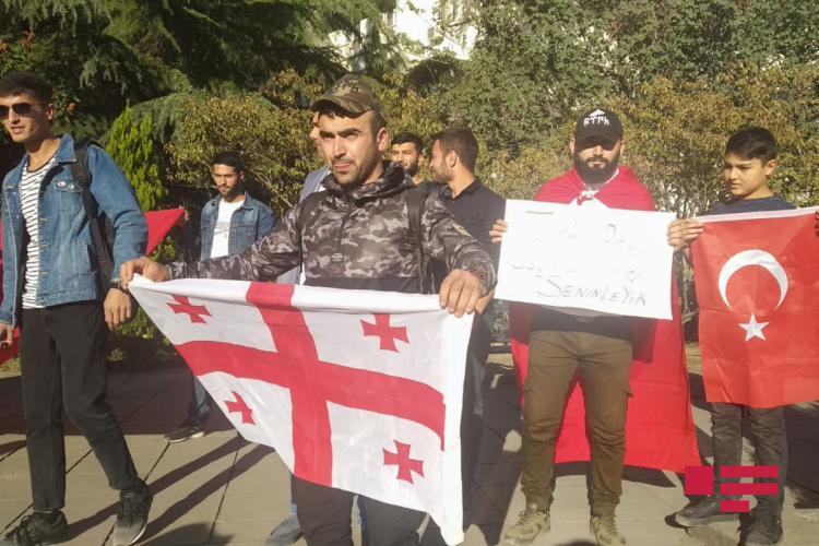 Gürcüstanın paytaxtı Tbilisidə Türkiyə səfirliyinin qarşısında "Barış bulağı" hərbi əməliyyatlarına dəstək məqsədi ilə aksiya keçirilib.