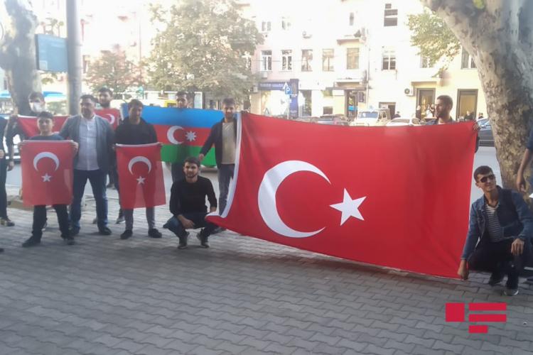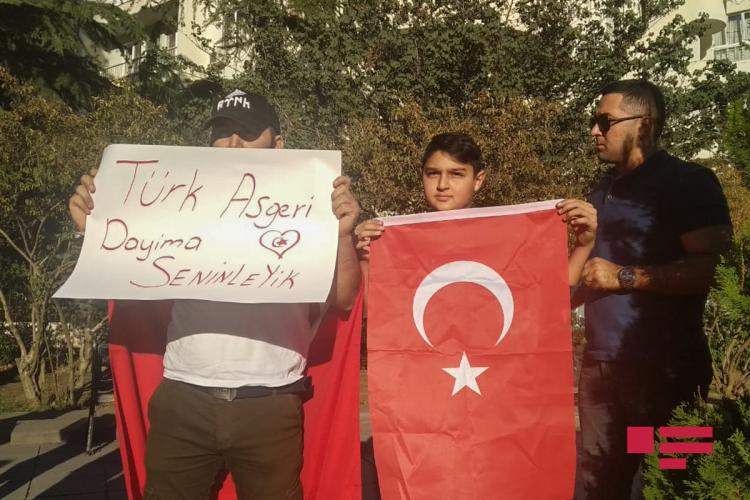 Aksiya iştirakçıları Türkiyə hərbçilərinə dəstək olaraq "Dik dur, əyilmə, bu millət səninlə!”, "Hər türk əsgər doğulur" şüarları səsləndiriblər, dünya dövlətlərini Türkiyəyə qarşı ədalətli mövqe tutmağa çağırıblar.