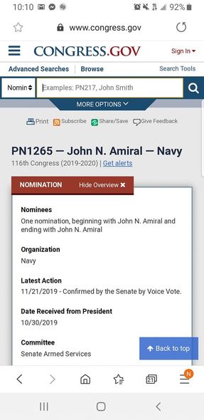 Onun namizədliyi ABŞ Senatı tərəfindən 22 noyabr 2019-cu il tarixində təsdiq olunub.