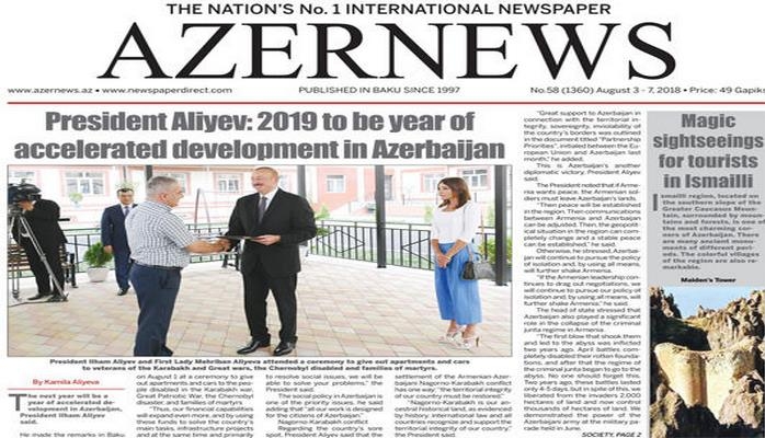 Avqustun 3-də "AZERNEWS" onlayn qəzetinin növbəti nəşri çapdan çıxıb