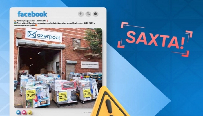 "Sosial kanallarda yaradılmış saxta "Azərpoçt" səhifəsindən paylaşım edilərək itirilən, eləcə də, 6 aydan çox poçt şöbəsində qalan bağlamaların simvolik qiymətə - 2,28 AZN-ə satıldığı bildirilir. Kiçik məbləğə böyük hədiyyələr vəd verən paylaşımda sifariş üçün vətəndaşlardan linkə keçid etmələri xahiş olunur.