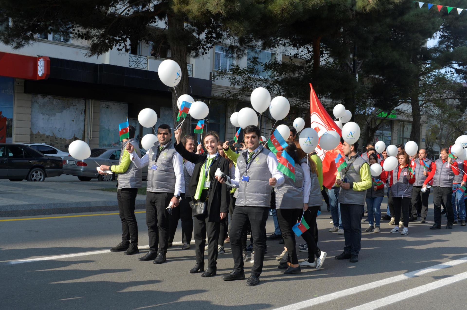 Sumqayıt şəhəri İcra Hakimiyyətinin qarşısında təşkil edilmiş paradda Şirkətlər Qrupunun yüzlərlə əməkdaşı iştirak edərək səmaya sülhün rəmzi olan 70 ağ göyərçin buraxıblar.