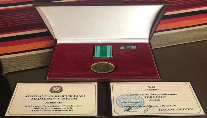 Onun tərcümeyi-halını nəzərdən keçirirəm. Bütün titulları, adları ilə birlikdə diqqətimi bir məqam da cəlb edir. 2006-cı ildə Azərbaycan Prezidenti İlham Əliyevdən aldığı “Tərəqqi” medalının adını birinci yerdə yazır. Soruşanda dedi ki, bu günə qədər aldığı mükafatların içərisində ən çox dəyər verdiyi “Tərəqqi” medalıdır.