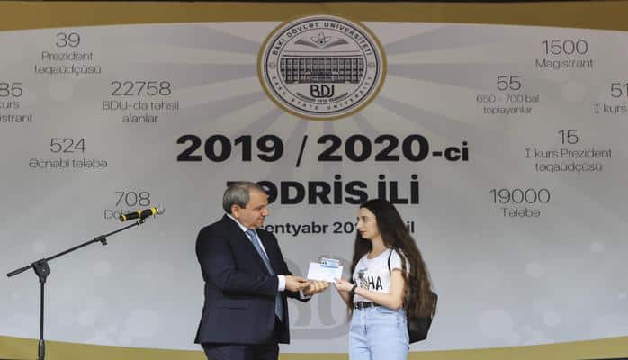 Bu il ölkə üzrə ali təhsil müəssisələrinə keçirilən qəbul imtahanlarından danışan rektor ən çox tələbə qəbulunun Bakı Dövlət Universitetinin payına düşdüyünü, Qazax filialı da daxil olmaqla ali təhsilin bakalavriat və magistratura səviyyələri üzrə BDU-ya qəbul olunanların ümumi sayının 6462 nəfər təşkil etdiyini bildirib. Məlum olub ki, həmin tələbələrdən 5127 nəfər bakalavriat səviyyəsinə, 550 nəfər Qazax filialına, 785 nəfər tələbə isə magistraturaya qəbul olunub. Qəbul imtahanı verən abituriyentlərdən 500-dən çox bal toplayan 1563 nəfəri Bakı Dövlət Universitetini seçib.
