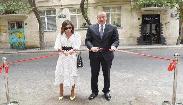 Dövlətimizin başçısı və birinci xanım Mərkəzin rəmzi açılışını bildirən lenti kəsdilər.